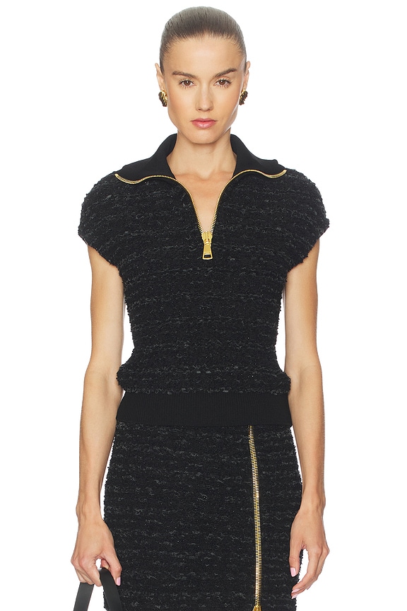 Zipped Short Sleeve Tweed Top