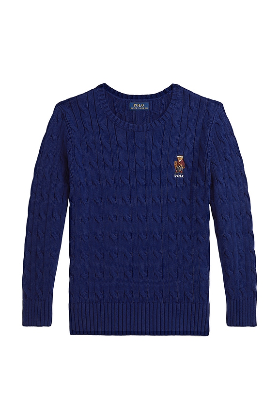 Long Sleeve Cable Knit Bear Graphic Crewneck Sweater